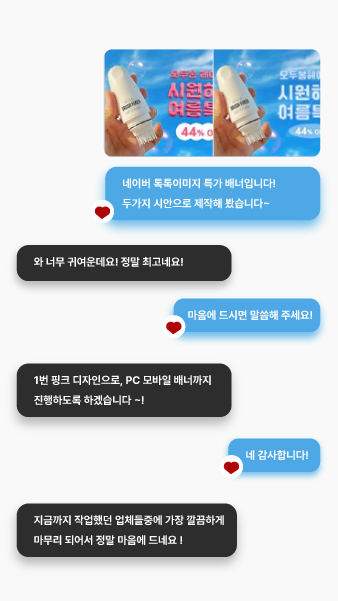 완성된 마스터본을 고객님께 전달드리며, 온라인 판매의 꿀팁 전수로 마무리됩니다.